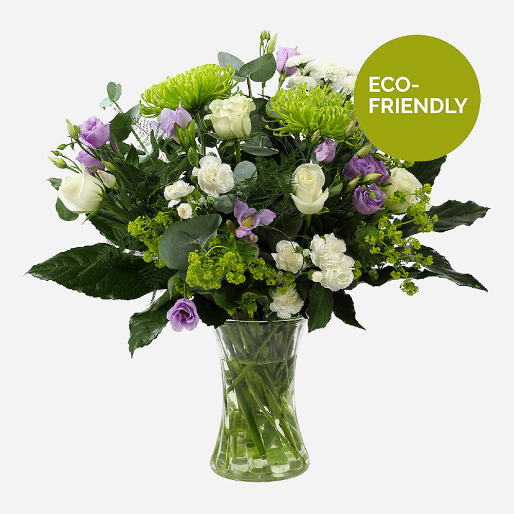 A stunning array of blossoms and natural foliage, unspoiled bright and beautiful, as nature intended. *Fine Print: Every bouquet is hand made and delivered by the local florist. Pictures shown are recent examples of an actual arrangement that were designed by talented florists and later sent out to a customer just like you! Please note that each individual florist cannot guarantee what the flower varieties or colours will be, they do guarantee that your specific arrangement will be fresh, beautiful and that your recipient will love it!